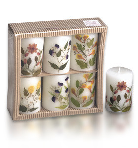 All candles are handcrafted with real handpressed flowers with fragrances as exotic as their appearances. Each candle burns for 3 hrs. approx.